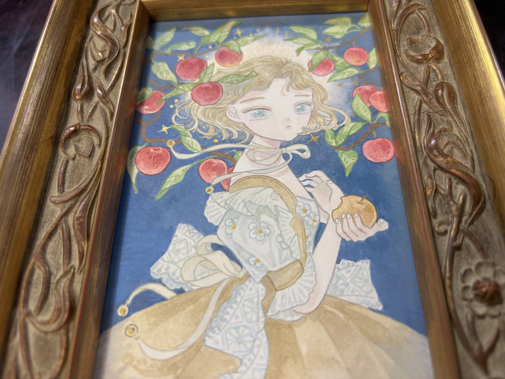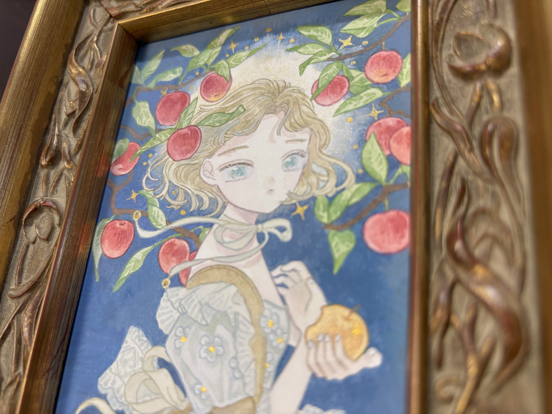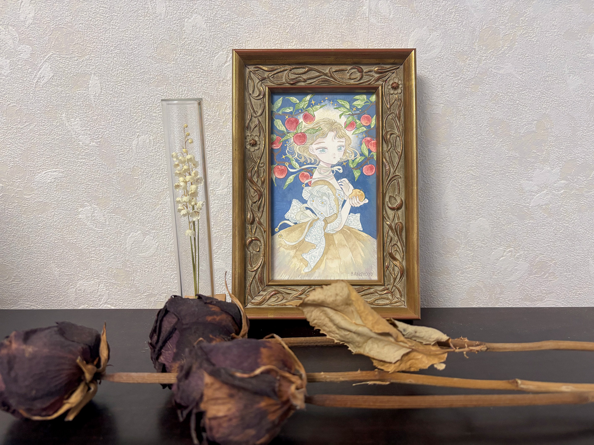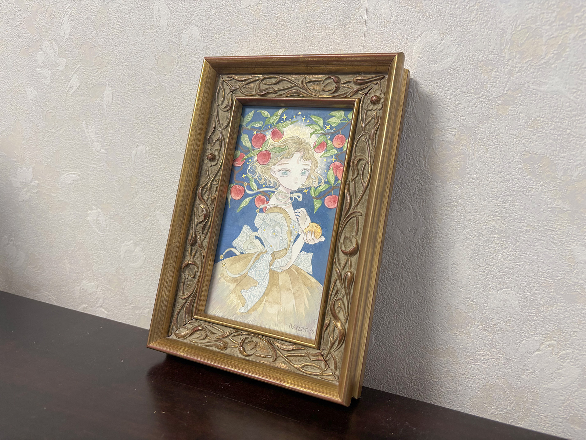 『Fruit and Silence』サイズ:150mm×90mm画材:アルシュ水彩紙に不透明水彩制作年:2025年額装サイズ:190mm×130mm販売状況:sold out